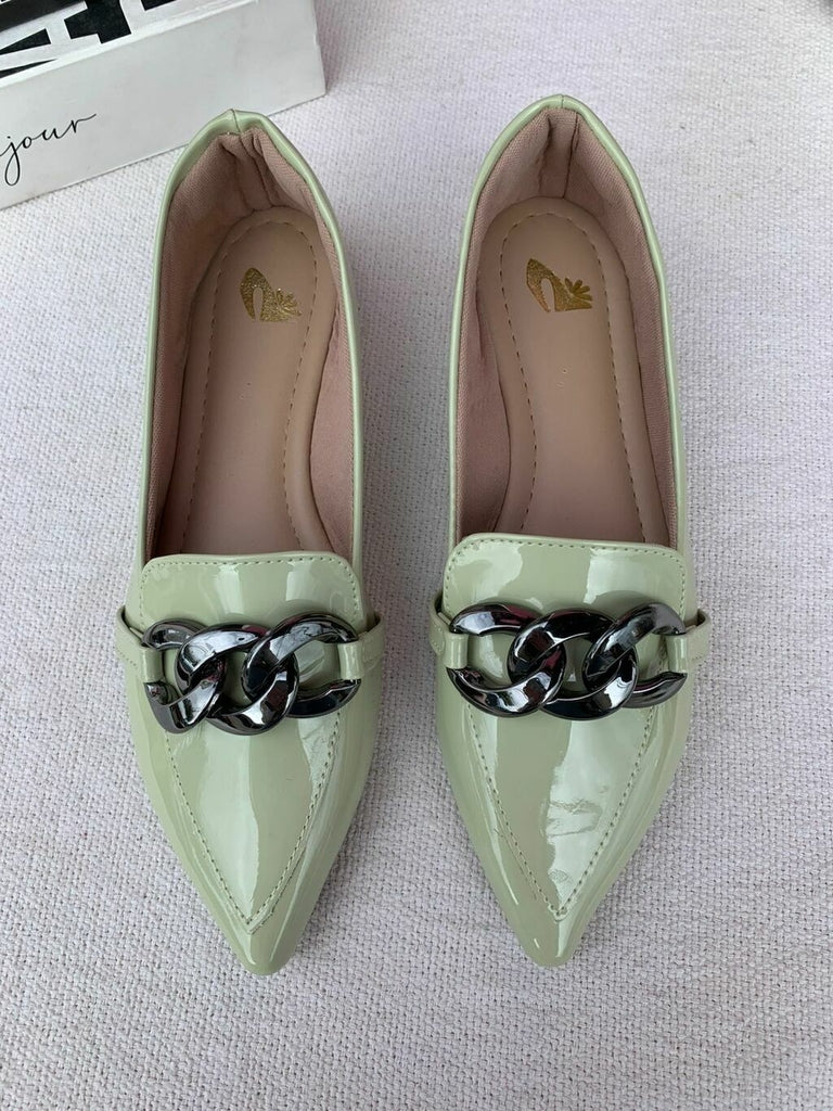 Mocassim Alongado Verde Com Corrente – Conforto e Estilo para o Dia a Dia