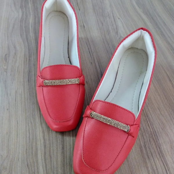 Sapatilha Prime Mocassim bico quadrado Vermelho Strass