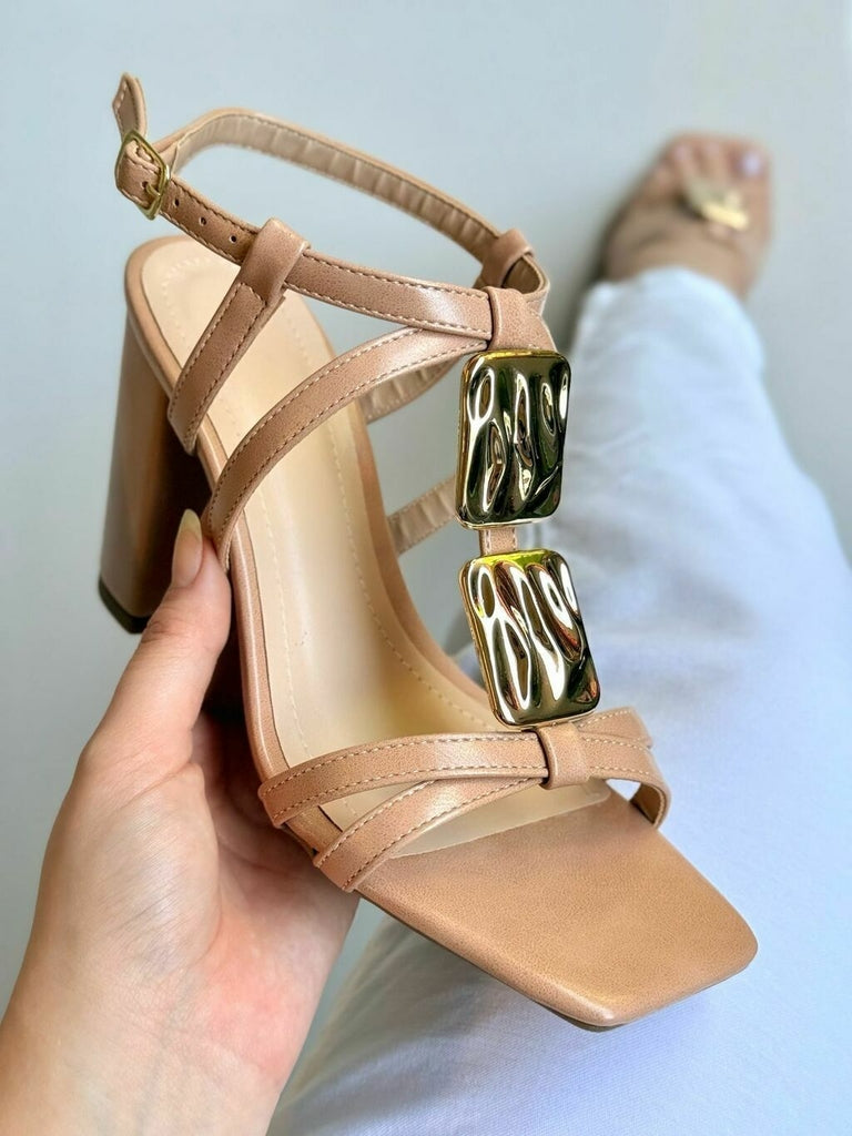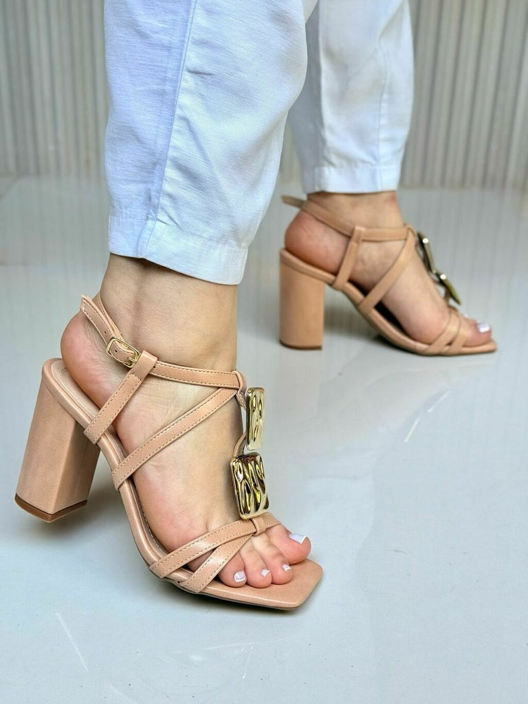 Sandália Salto Bloco Nude Amália