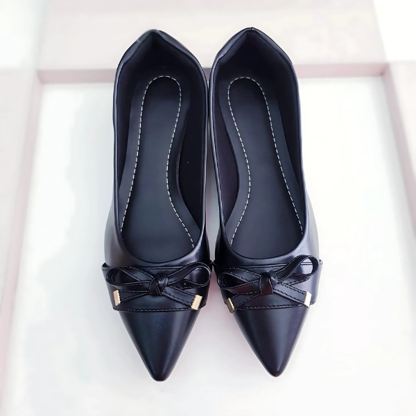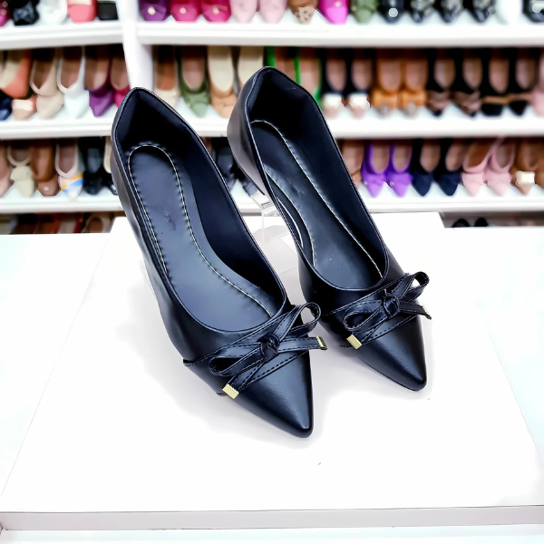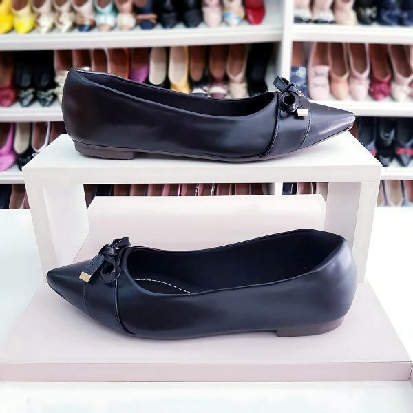 Sapatilha Prime bico fino alongado preta com lacinho