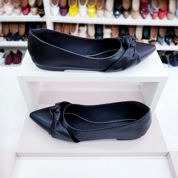 Sapatilha Prime bico fino alongado preta de nozinho