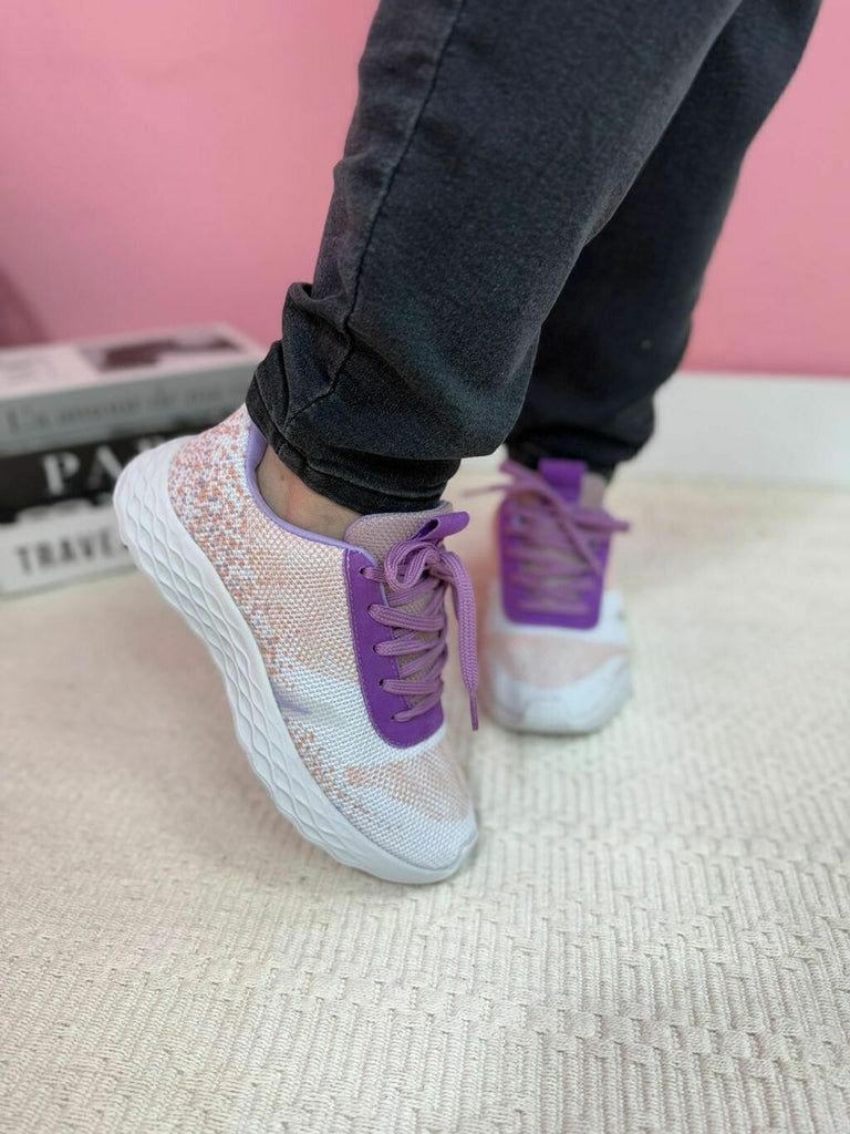 : Tênis Cadarço Branco com Lilás.